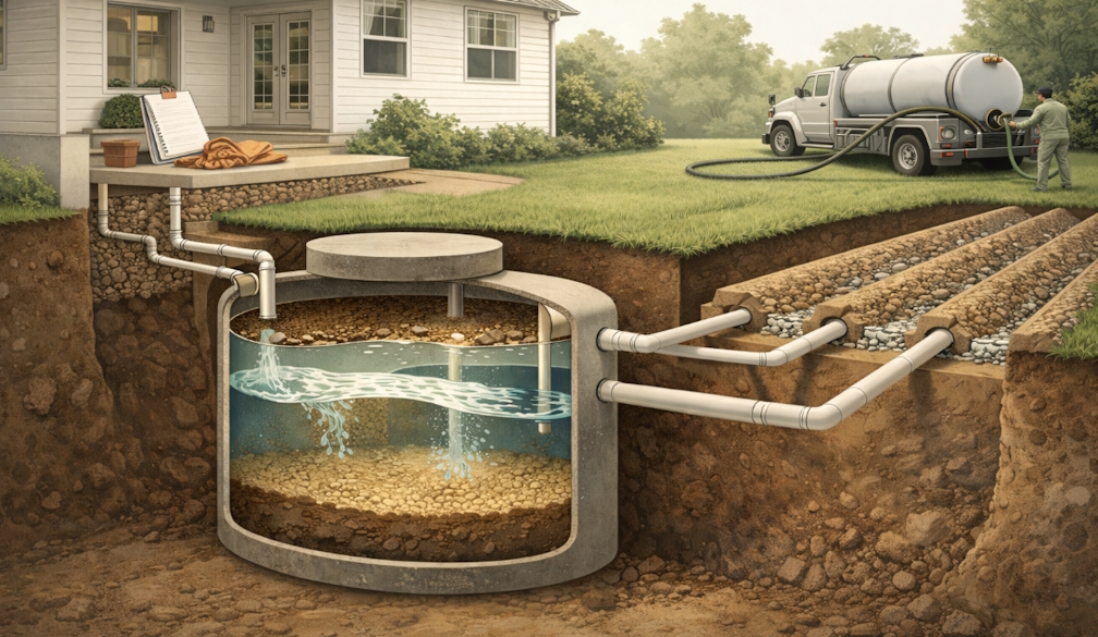 Bacteria break down some organics, but they do not eliminate everything. As sludge and scum thicken, the tank has less effective space to hold and separate waste. Eventually, solids can carry over into the outlet and reach the drainfield, where they clog soil and pipes. Drainfield repairs tend to be far more disruptive and costly than routine tank servicing.